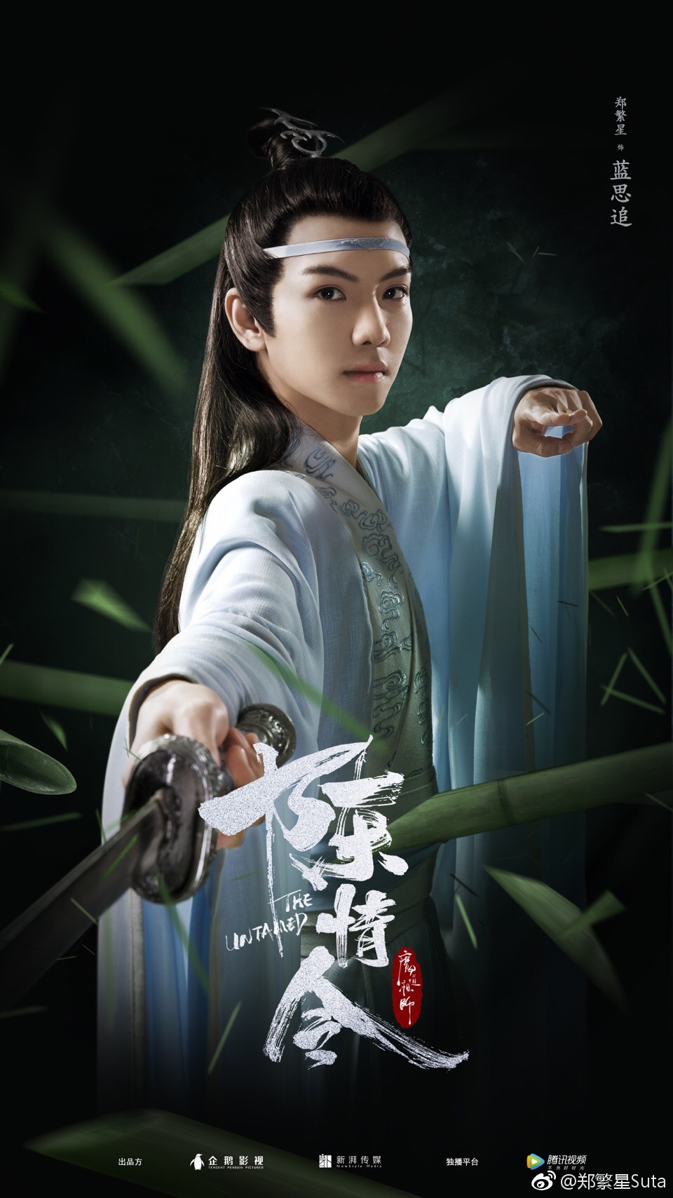 {He is dressed like a proper Lan disciple. The robes are more comfortable - more familiar to him - and, of course, he can't ever dispense of his headband. The plucking of strings can be heard, but since the camera is focused on his face, the guqin isn't in view.}